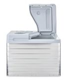 Wheeled electric travel cooler with 12v power cord.