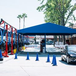I'm sorry i don't live near my work. Car washes are widely available and simple to use. It's also typically the cheapest, after washing your car at home.